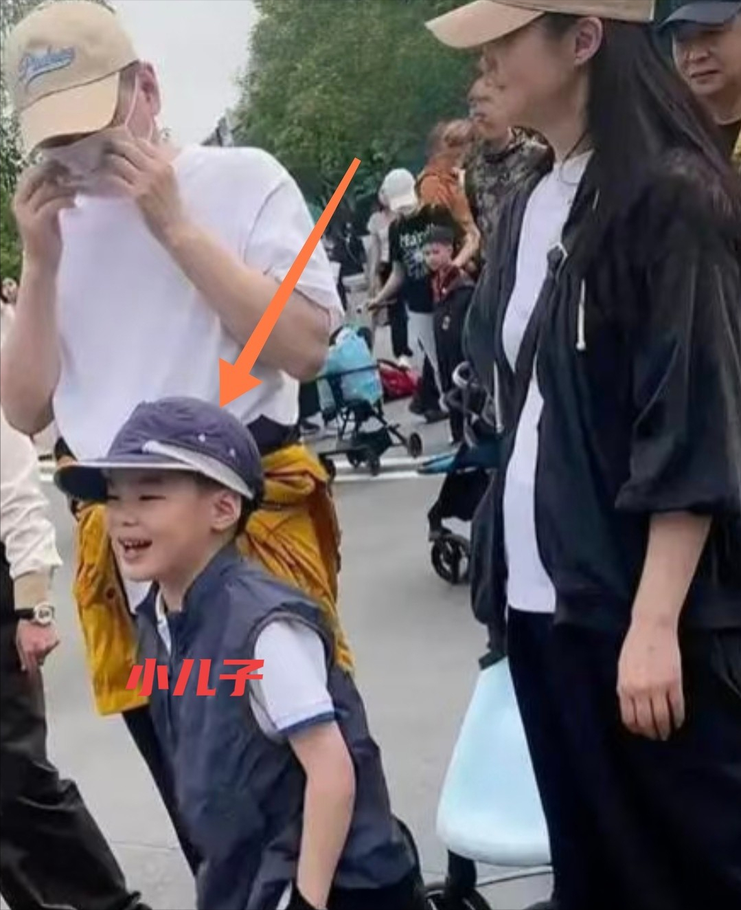 然后就是一家三口在一起的镜头,陈建斌不知道为啥高兴得合不拢嘴,看得出陈建斌对儿子是多么的宠爱,7岁儿子走路走累了,直接用小车推着儿子走,然后老婆在身边陪着,这状态,谁看到不羡慕呀,怪不得陈建斌这么高兴呀。